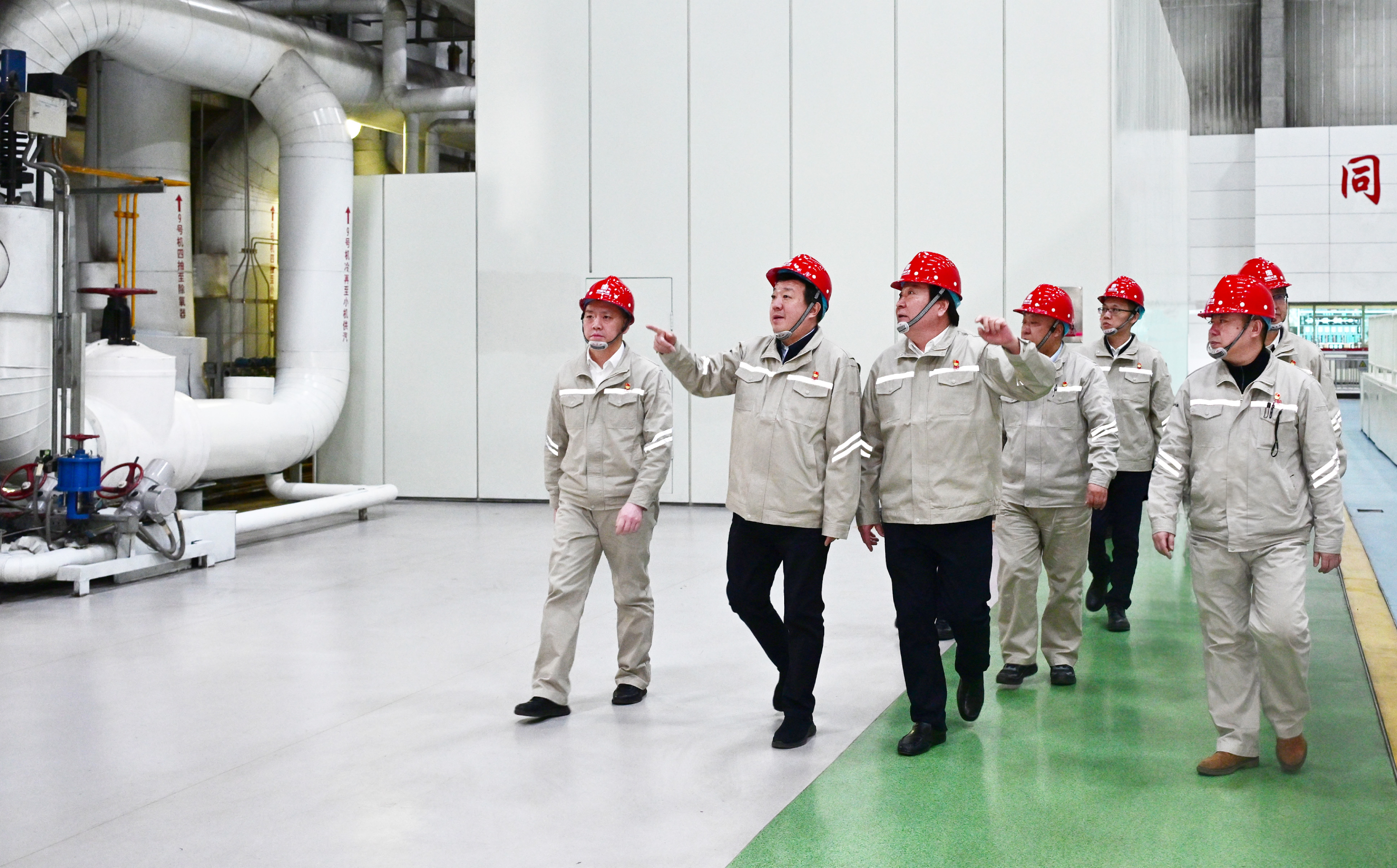 呂軍先后來到托克托發電公司廠展室、智慧能源中央控制中心、五期生產現場、智慧燃料管控中心,詳細了解企業發展歷程、綠色轉型、經營管理、保暖保供、安全生產等情況,并與一線職工親切交談。