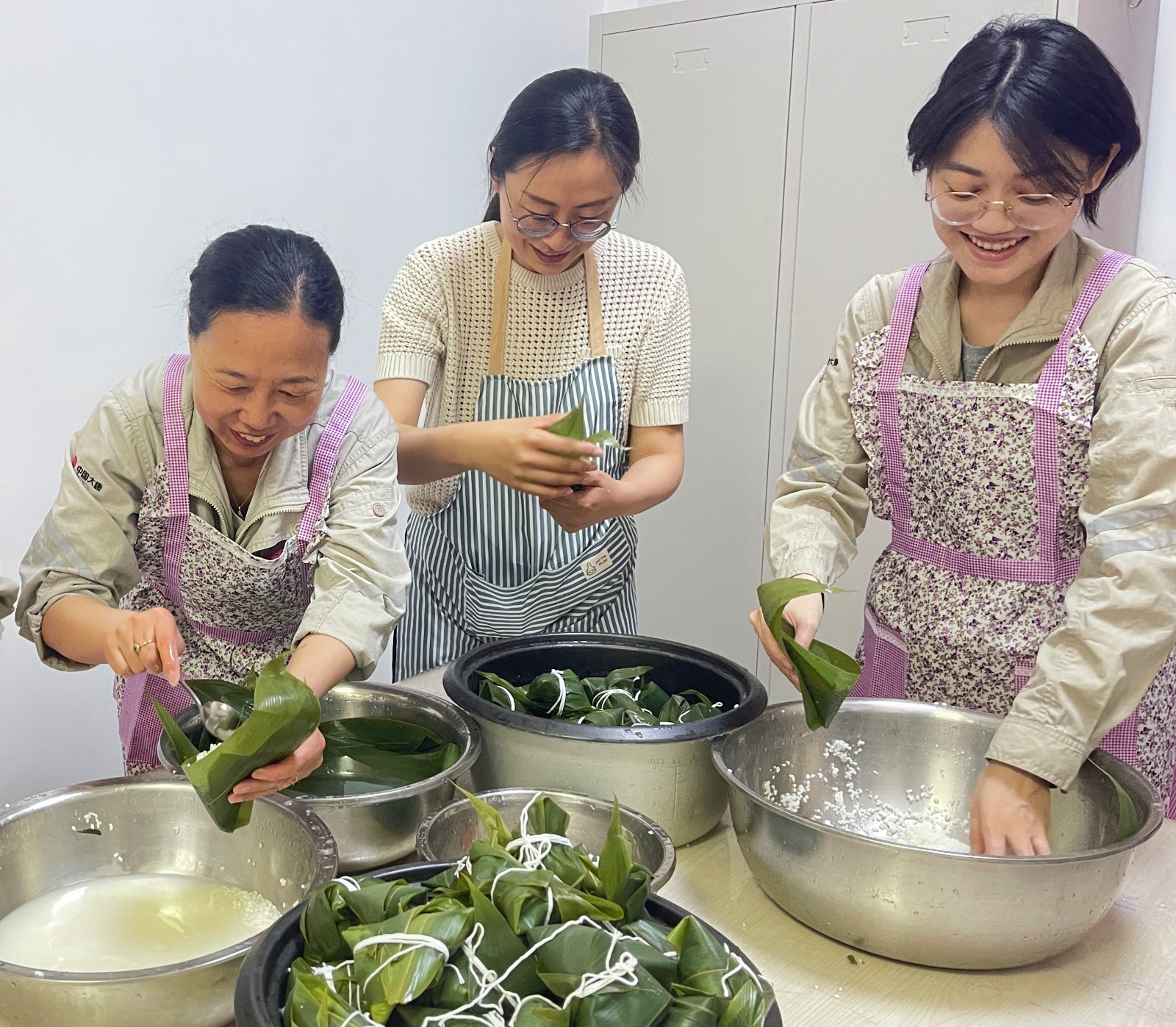 職工們踴躍參與,提前準(zhǔn)備好了粽葉、棉線、糯米、紅棗等材料,在活動中相互交流包粽子的手法、分享的端午節(jié)趣事,其樂融融。