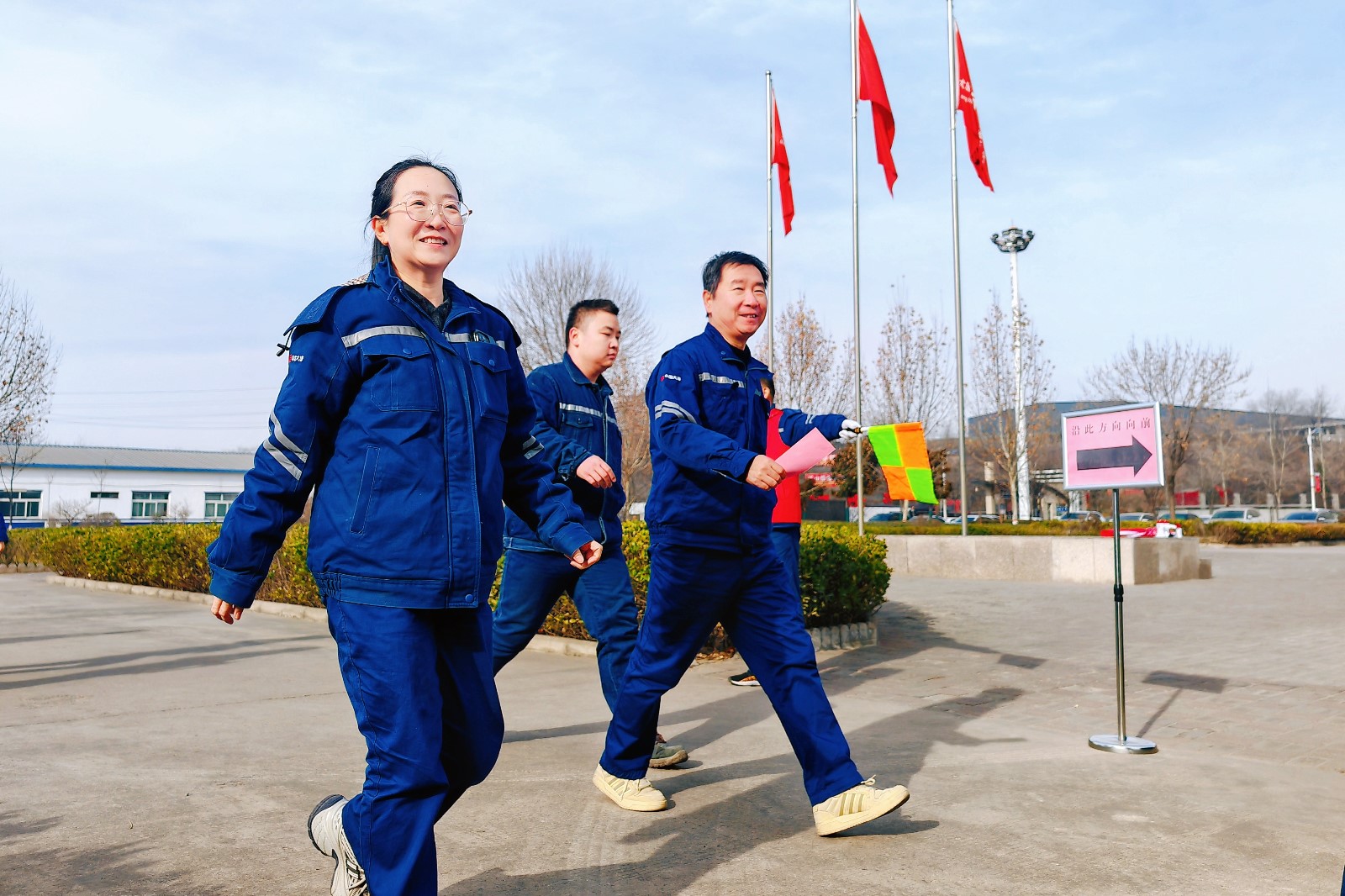 伴隨著冬日的暖陽,70余名職工準時來到集合地點,以分工會為單位整齊列隊。隨著發(fā)令笛響,在旗手的引領下,職工們有序出發(fā),環(huán)繞著廠前區(qū)廣場,邁著強勁的步伐前行。行進過程中,大家精神抖擻、步履鏗鏘,開心、喜悅的笑容洋溢在臉上。