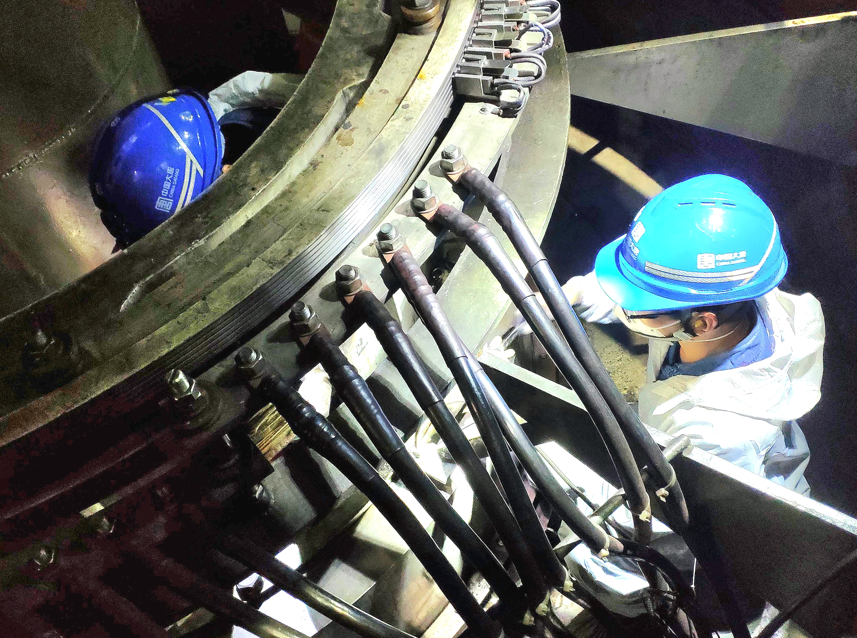 在眾人的努力下,第一塊短路板終于對(duì)準(zhǔn)位置,接下來(lái)就是擰緊螺栓。大家拿起扳手,開(kāi)始一顆顆地?cái)Q動(dòng)螺栓。每擰一顆螺栓,都需要用盡全身的力氣,扳手在他們手中不停地轉(zhuǎn)動(dòng),發(fā)出“咔”的聲音。