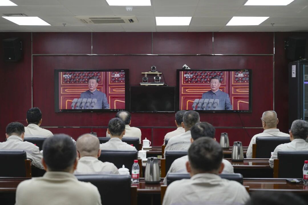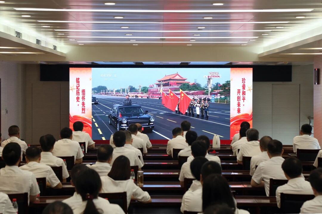 黑龍江發(fā)電公司系統(tǒng)1400余名黨員干部職工在37個(gè)會(huì)場(chǎng)通過(guò)電視觀看九三閱兵直播。