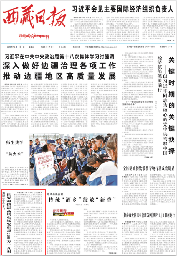 [西藏日?qǐng)?bào)]世界海拔最高風(fēng)電場(chǎng)發(fā)電超2200萬(wàn)千瓦時(shí)