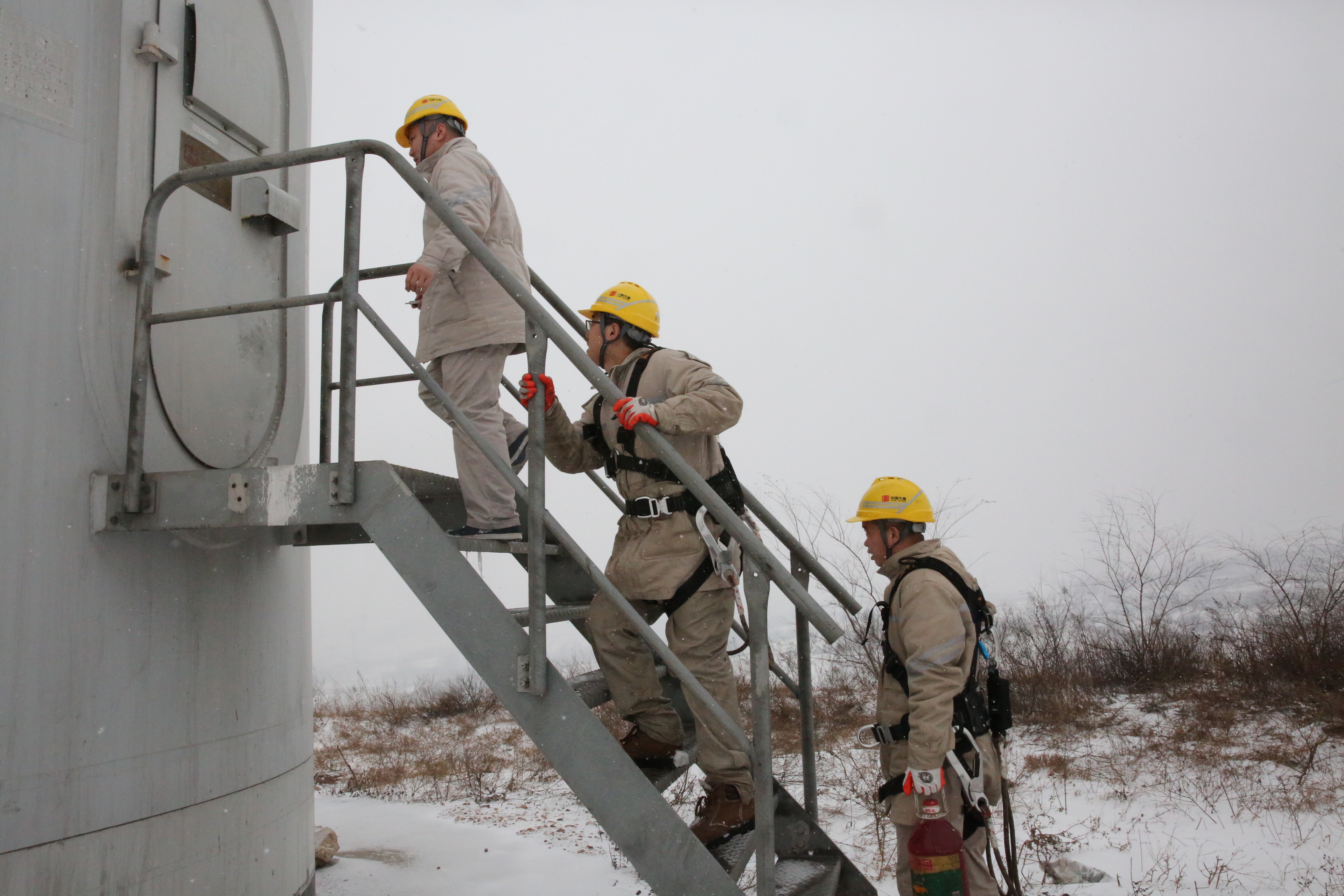 開艙門、做安措、“三講一落實(shí)”……風(fēng)機(jī)底下的溫度已逼近零下十度,風(fēng)機(jī)艙外樓梯上的冰溜子直杠杠的掛著,八十多米高的風(fēng)機(jī)機(jī)艙里或許更是一片“凍天”,但他們?yōu)槌弥★L(fēng)期消缺無所畏懼。