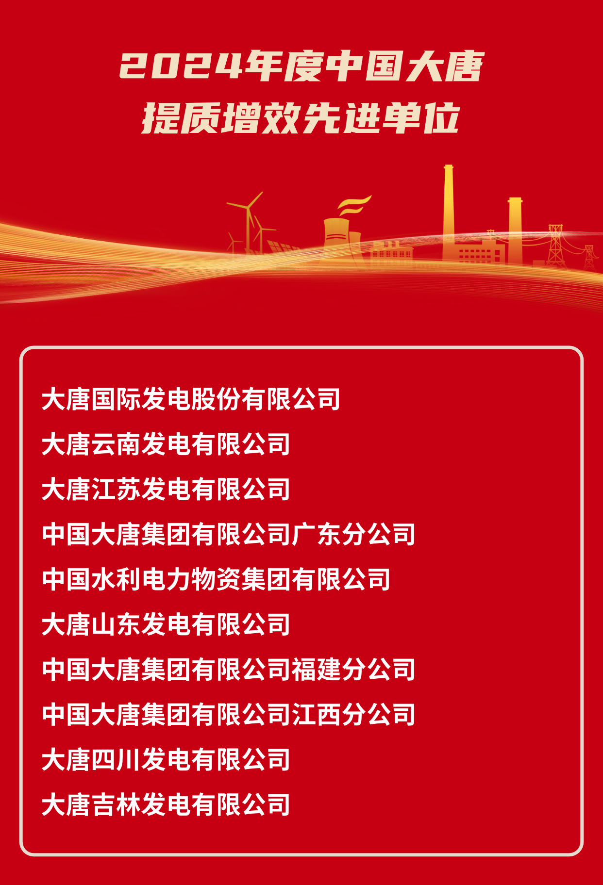 2024年度中國(guó)大唐集團(tuán)有限公司提質(zhì)增效先進(jìn)單位