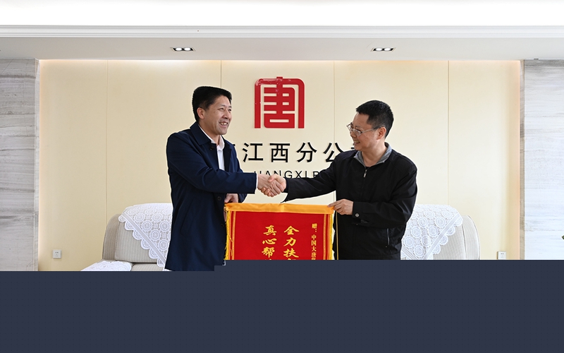 江西分公司不僅給富足村帶來了一件件看得見、摸得著的物質(zhì)財富,更是一筆筆豐富的精神食糧。4月13日,贛州市興國縣委領(lǐng)導(dǎo)一行專程來到江西分公司本部,將一面印有“全力扶貧不忘初心使命真心幫扶扛起社會責(zé)任”字樣的錦旗贈送給江西分公司,不僅表達了全體村民的感激之情,更是對大唐的肯定和贊許。